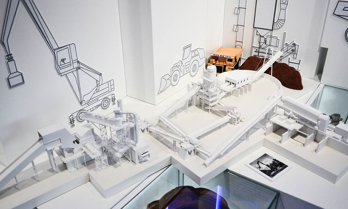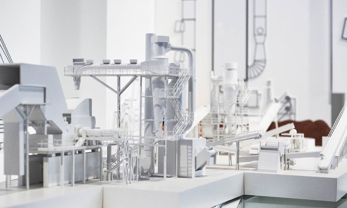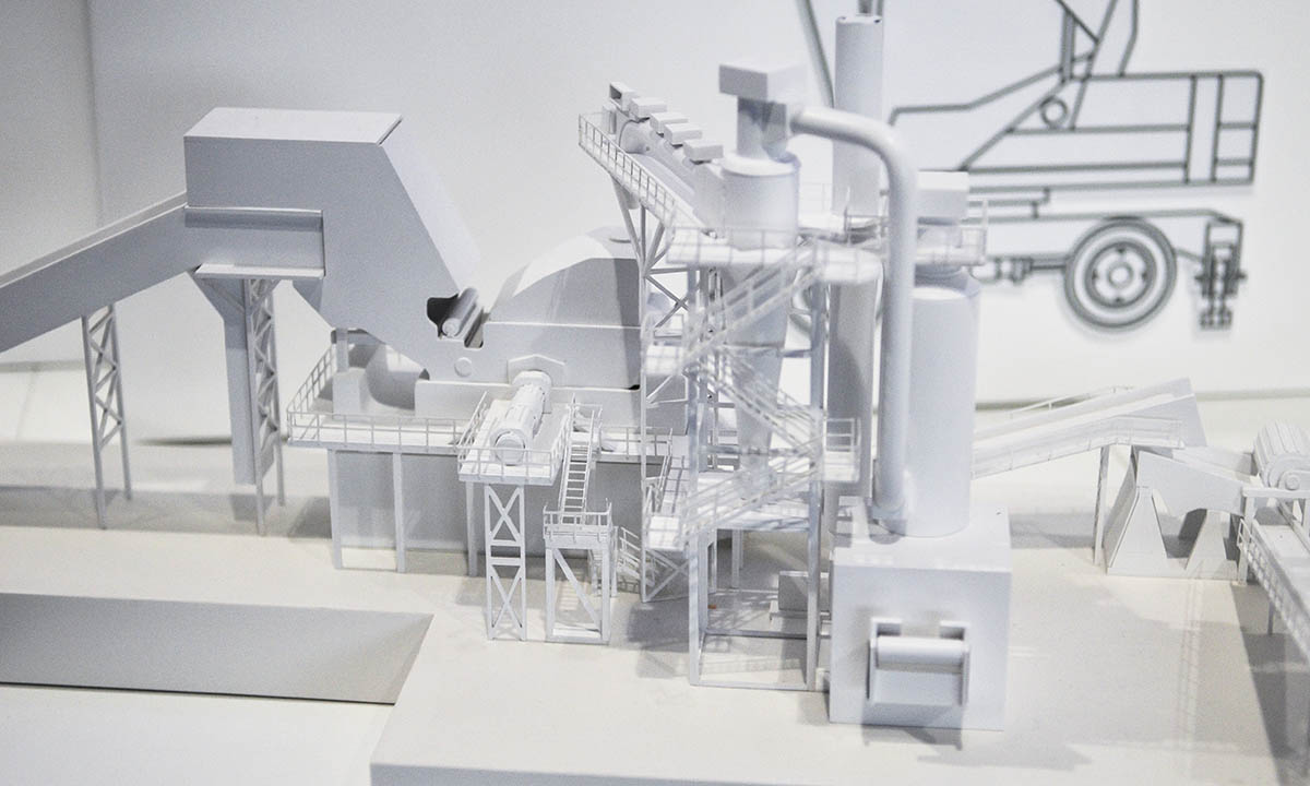 Макет демонстрирует работу механизмов шредерной установки по сортировке металлолома.
