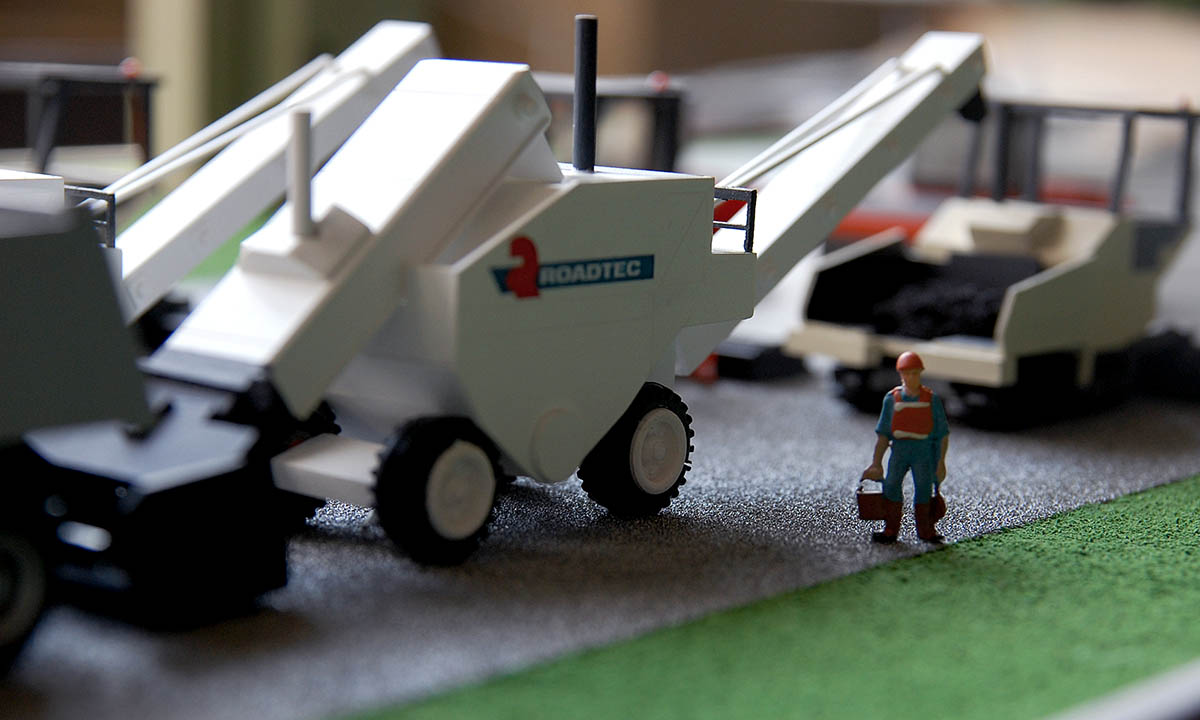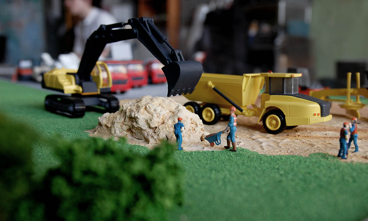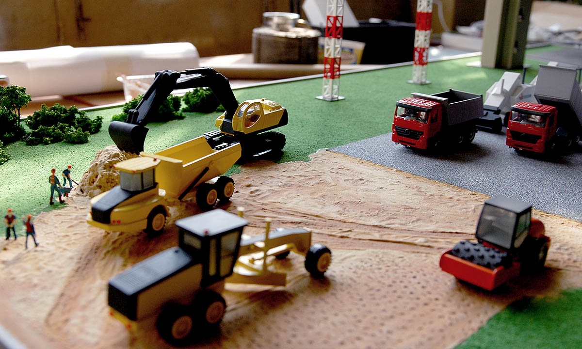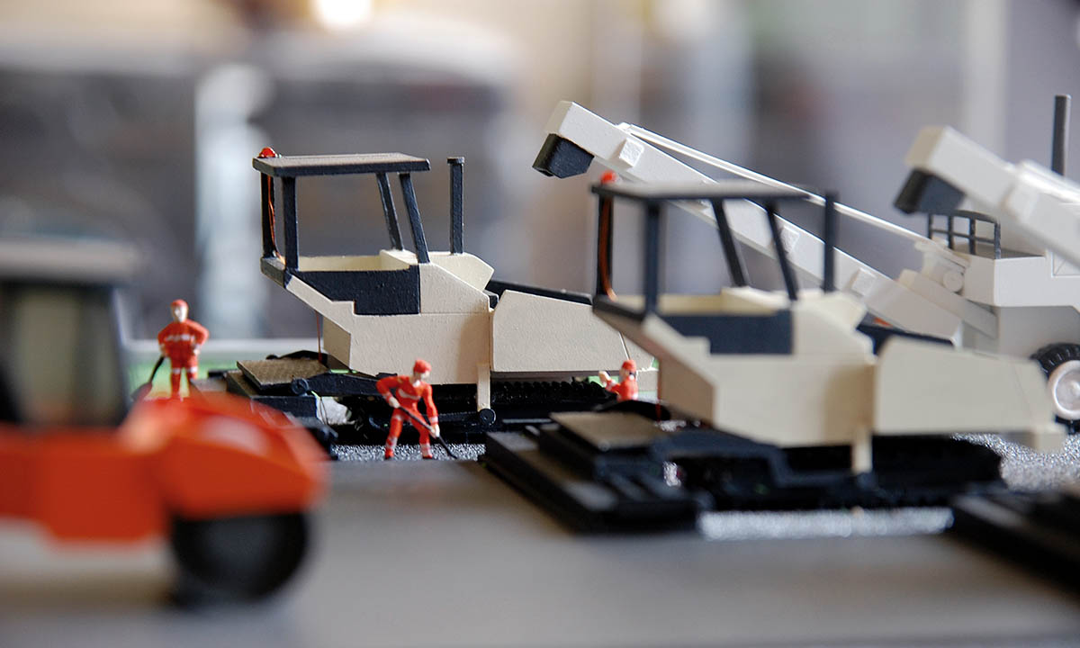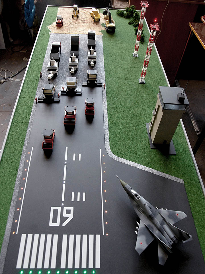 Макет показывает этапы строительства взлетно-посадочной полосы.
