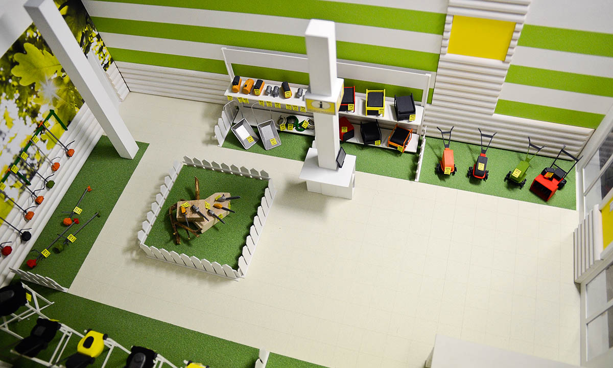 Макет демонстрирует дизайнерское решение оформления магазина.